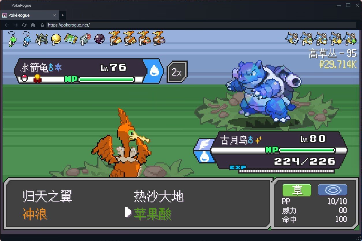 —95層勁敵— 蘋果酸打敗水箭龜,鋼鎧鴉聯防班吉拉斯,正好撲擊四倍剋制他