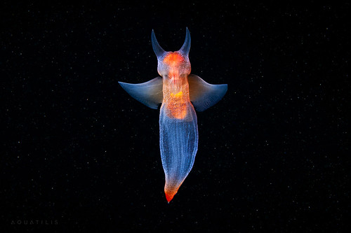 半透明的薄翼在水中冉冉飘动,犹如飞舞的天使,又因为裸海蝶多生存于北极、南极等寒冷海域的冰层之下,因此也被人们称为“冰海天使”。
