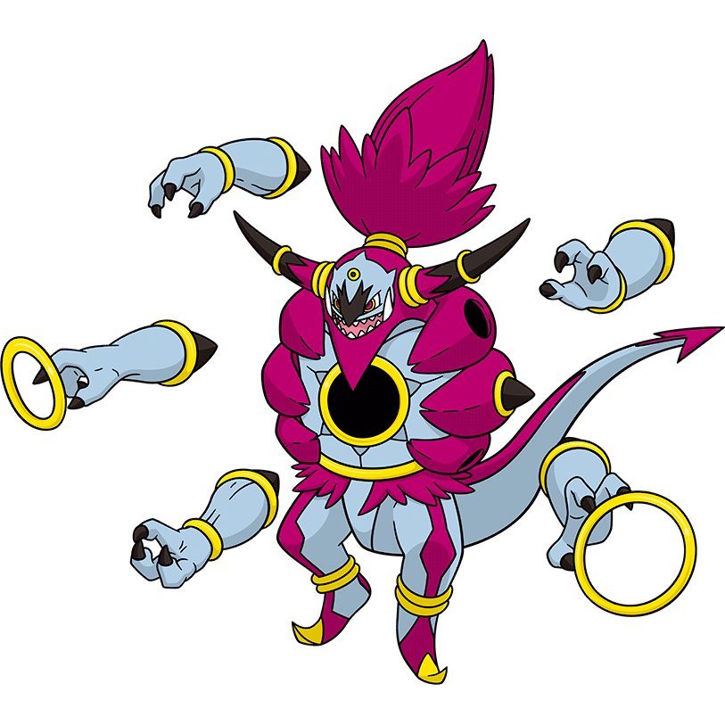 解放形态下的胡帕恢复了原本的力量,数只手悬浮在身边,控制着圆环发挥力量,尖牙利齿简直一副魔神模样。