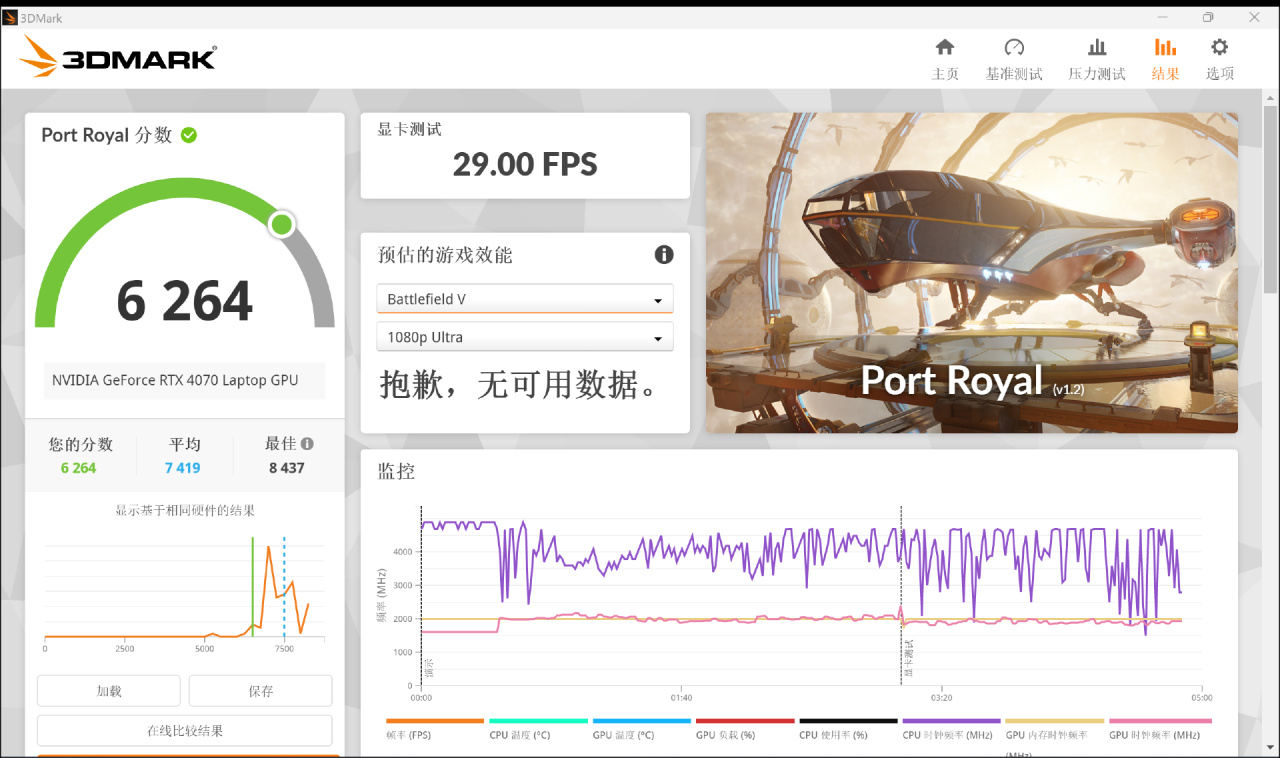 ▼Port Royal分數6264分,預估光追性能29FPS。