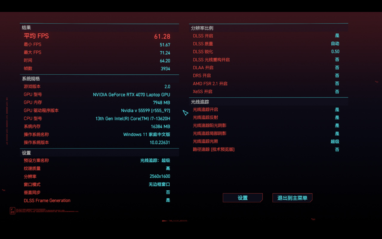 ▼光線追蹤超級:超級,開啓幀生成,61.28;