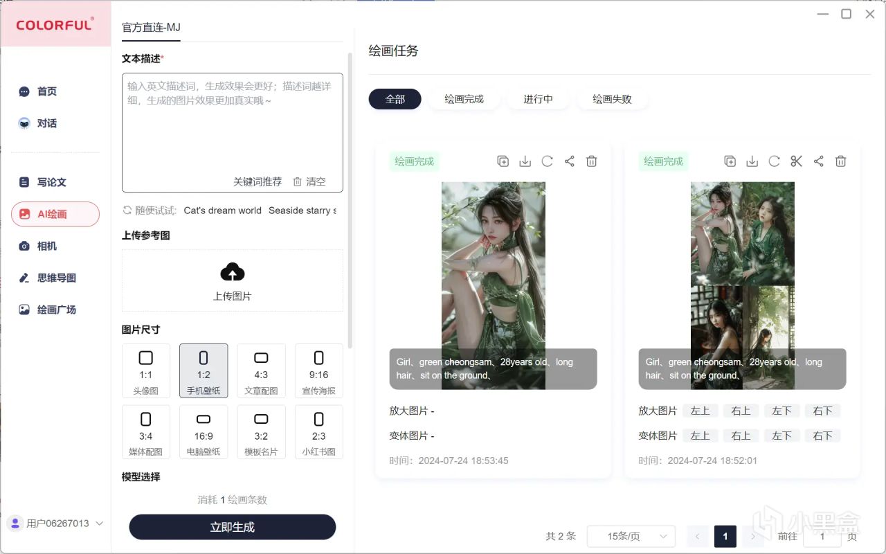 ▼AI作畫則是鏈接到MJ,輸入關鍵詞即可直接生成圖片,接觸AI繪畫的難度進一步降低。