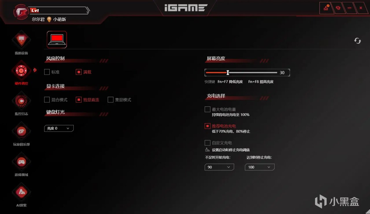 ▼至於爲什麼使用80%電量進行測試,主要原因是七彩虹iGame Center應用中貼心的幫大家準備了多種電池充電模式,推薦模式下充電到80%停止充電,可以延長電池的壽命。
