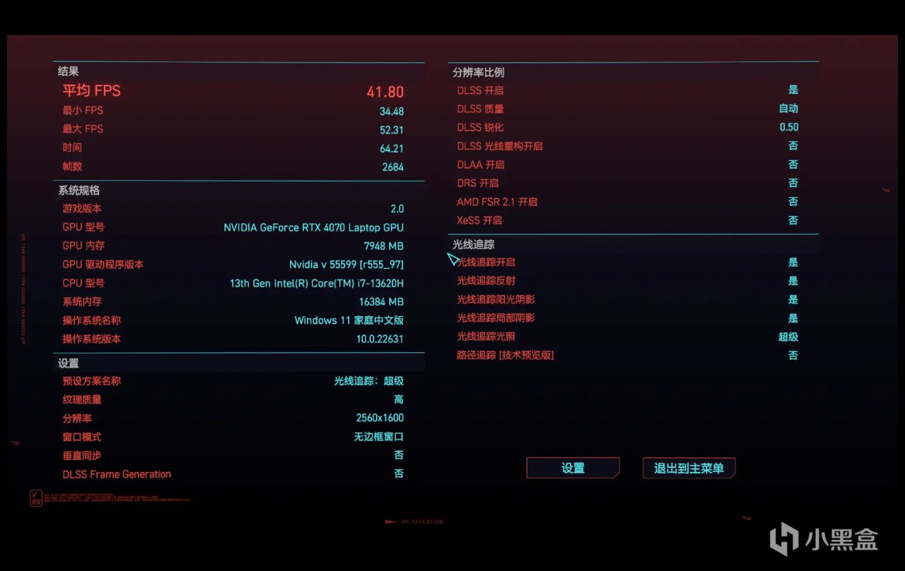 ▼光線追蹤超級:超級,不開啓幀生成,平均幀率41.8;