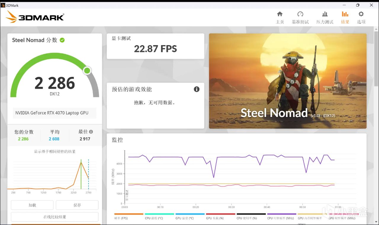▼Steel Nomad分數2286分,顯卡測試結果22.87FPS。