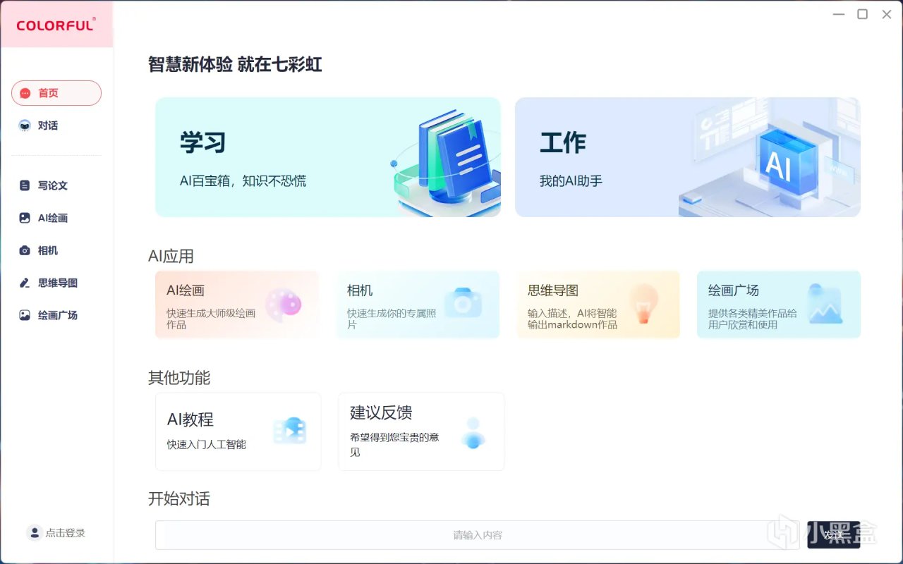 別的公司不知道,這一現象在我們公司中表現的尤爲明顯:學習能力強的員工已經在用AI爲工作賦能,不怎麼願意接觸新鮮事物的員工知道AI可以釋放生產力,但是卻連有哪些雲端AI可以使用都不知道,而很多領導忙於工作與應酬,雖然想去了解AI但總沒的時間。七彩虹【源N14】出廠即搭載的【虹光AI】程序很好地解決了這【最後一公里】的難題:雙擊鼠標左鍵進入程序即可推開AI的大門。
