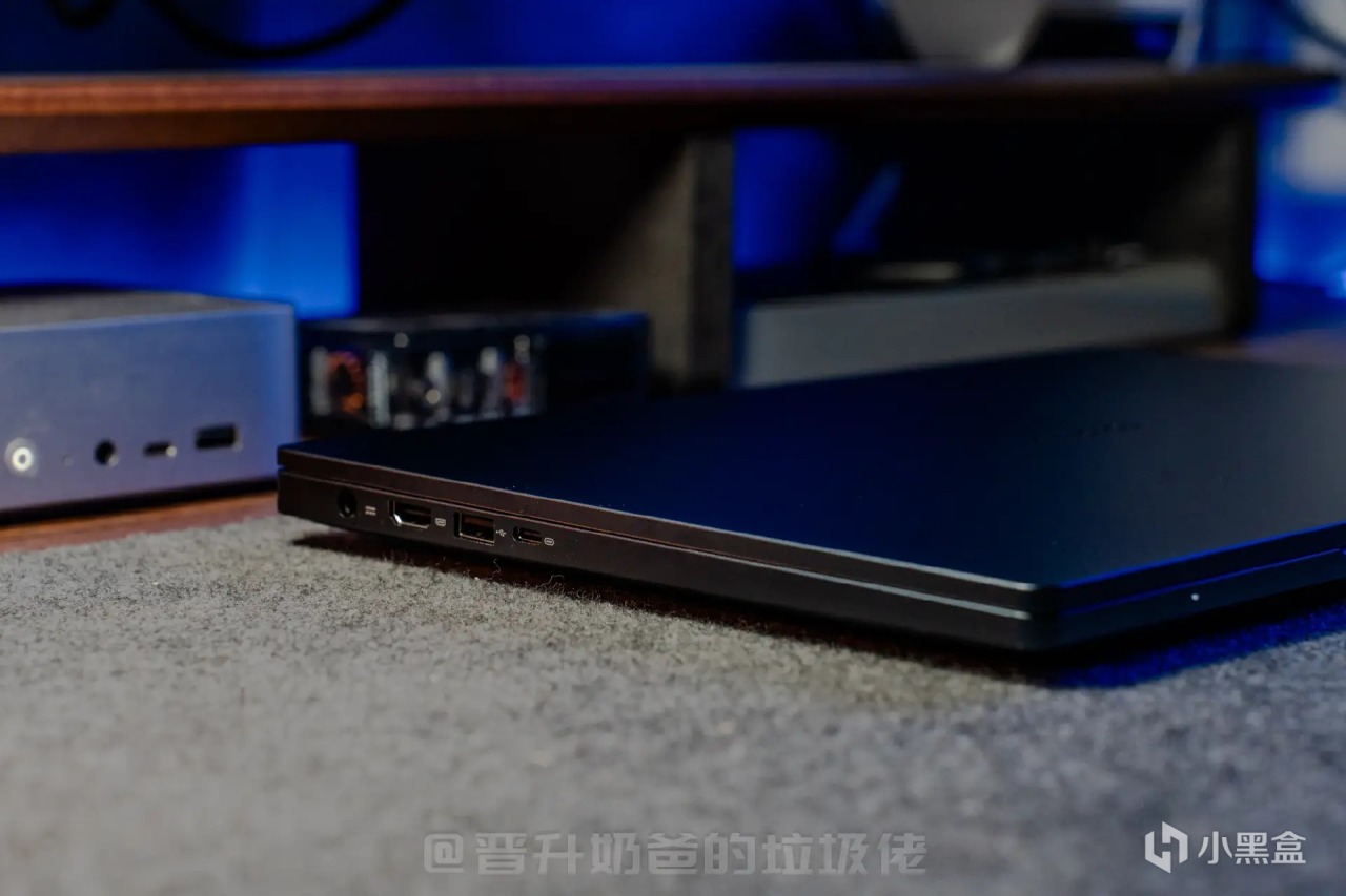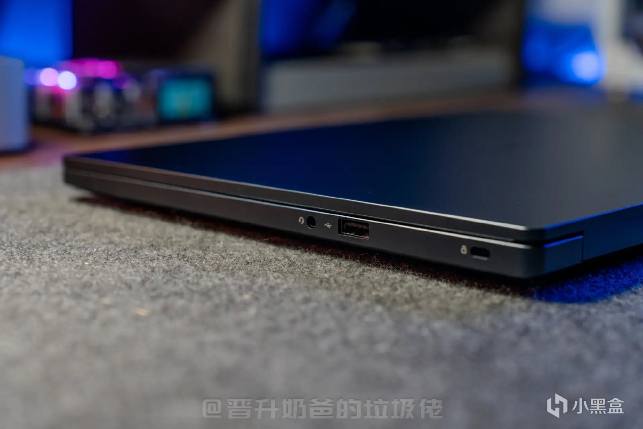 ▼在機身的右側則設計有防盜鎖孔、一個USB-A 3.2 Gen1接口,以及3.5mm音頻接口,對於我的使用場景來說,Type-C接口與華碩ProArt 329 CRV顯示器進行連接,同時滿足視頻輸出與筆記本充電的需求,2個USB-A接口分別連接鍵鼠,一切剛剛好。