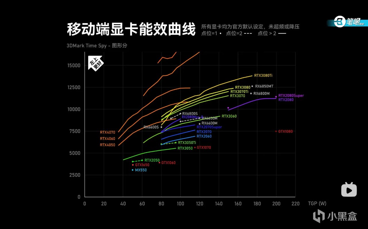 那有小夥伴可能就要說了,既然發揮不了顯卡的全部實力,那七彩虹源N14 全能本 AI PC爲什麼還要搞RTX 4070,有啥優勢呢?我個人認爲其最重要的考慮應當是RTX 4070的能耗比,RTX 4070顯卡可以說是目前(不含RTX 4080 筆記本電腦 GPU及以上)移動端GPU能耗“性價比”最高的,尤其在注重功耗與續航的輕薄本上,RTX 4070 laptop GPU的優勢才得以顯現。