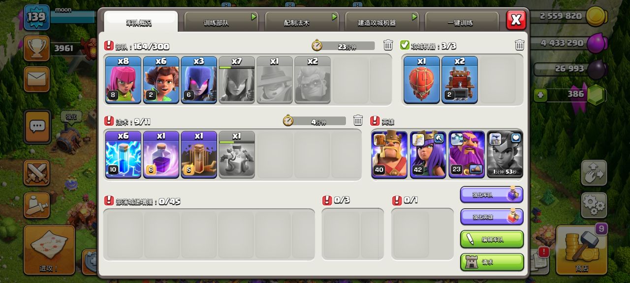 部落每次进攻前,可选择的兵种、法术和攻城机器是相当丰富的,因此衍生出了很多进攻流派:烟花飞龙、超弓狗球、闪震泰坦等,老手会心一笑,萌新仍需努力。
