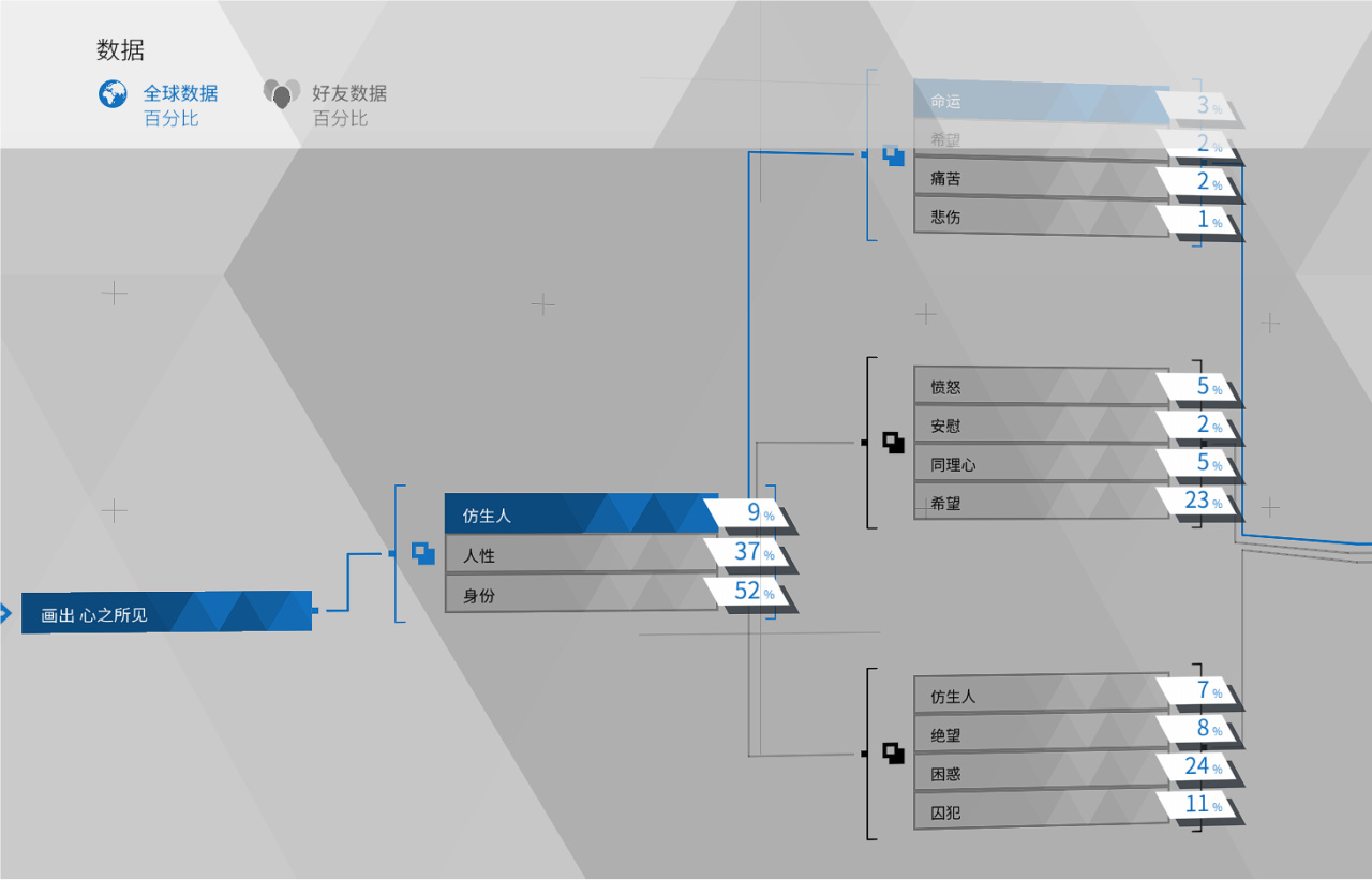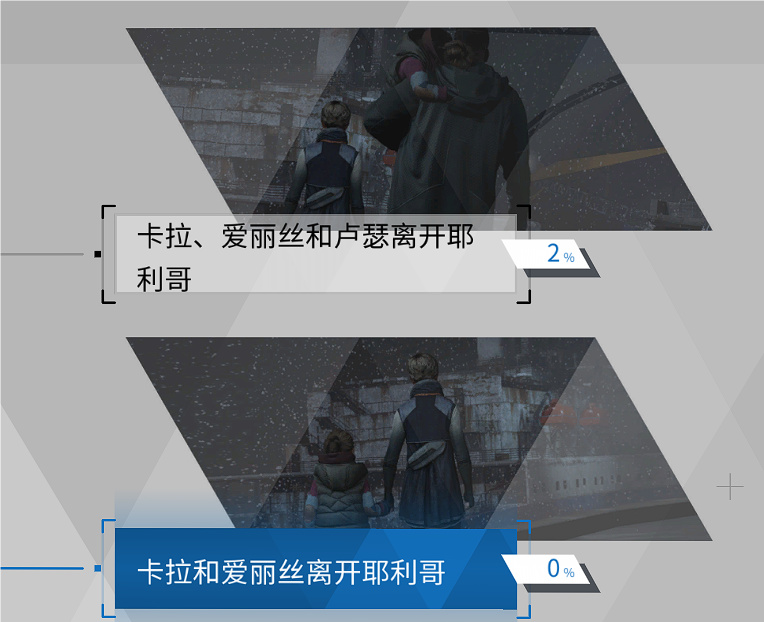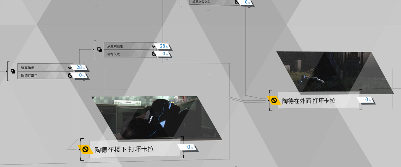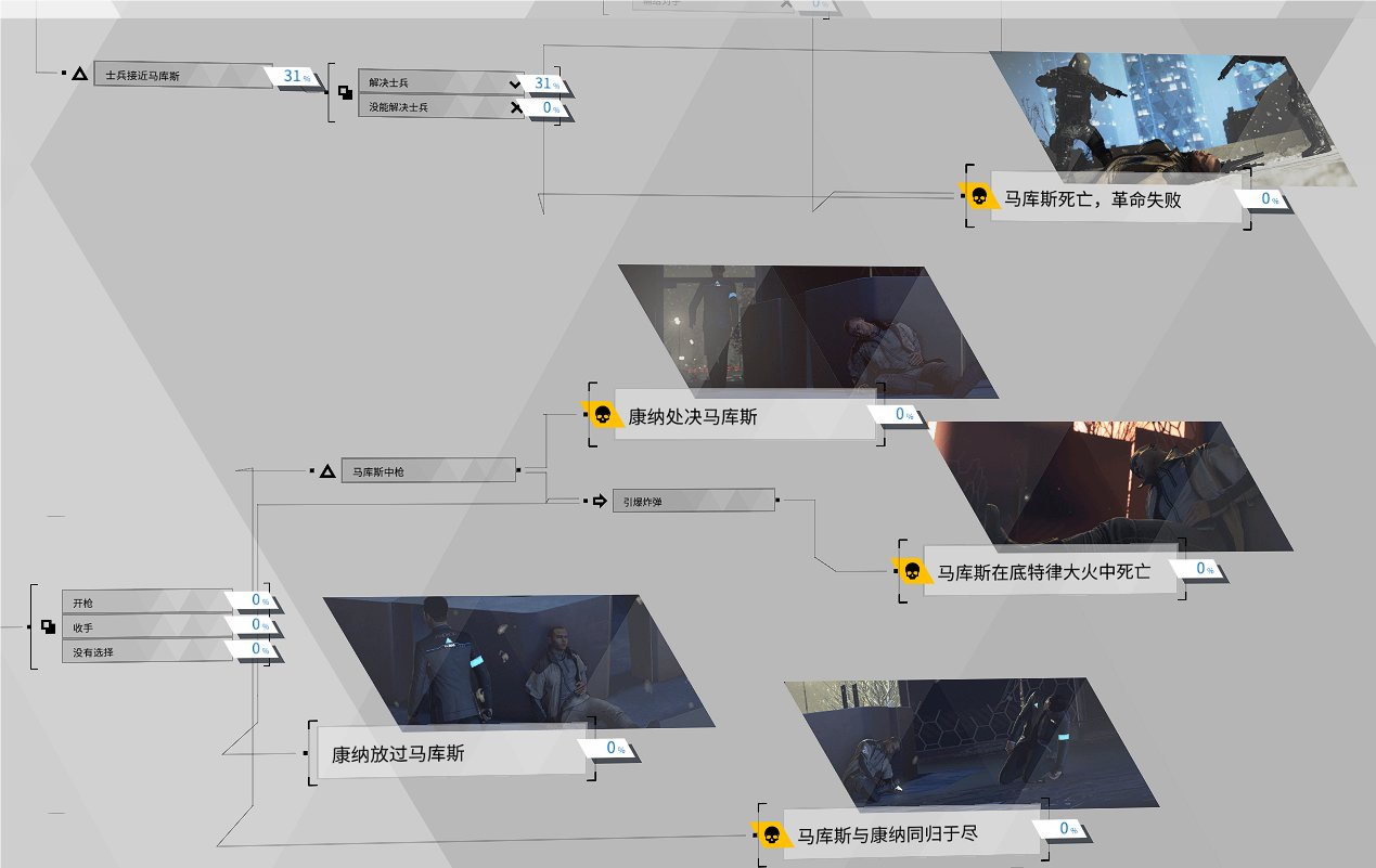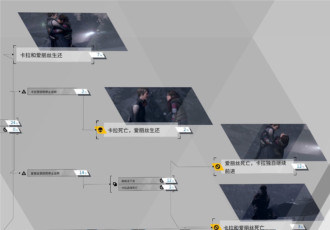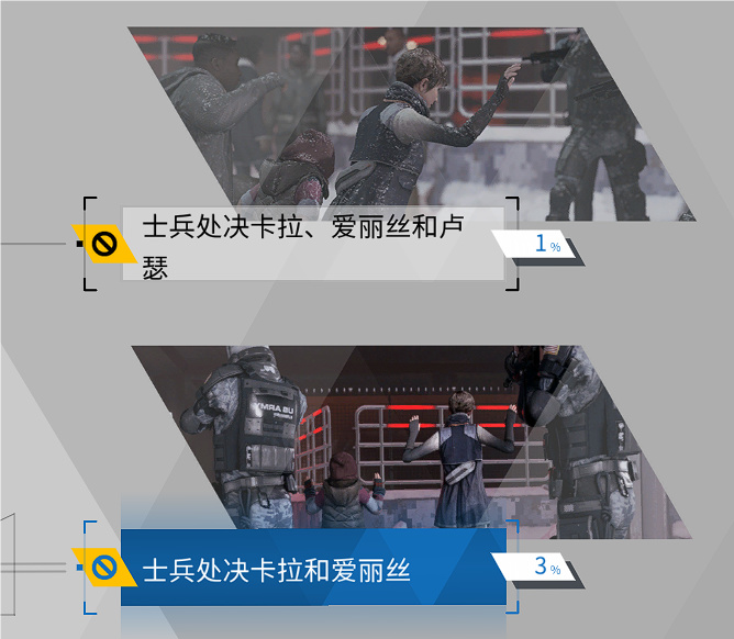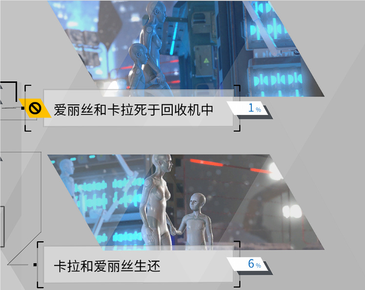 作为《底特律:变人》全支线+结局的玩家,盘点一下全球玩家几乎不选的路线。0%也不见得是一个人都不选,个人猜测是四舍五入,0.5%以下的可能统统归零,1%么则是0.51%-1.49%,以此类推。