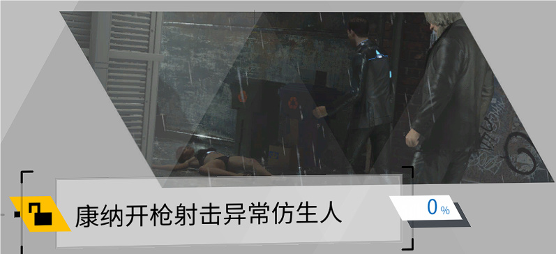 康纳在搜寻异常仿生人时被袭击→QTE失败导致对方开逃→选择开枪