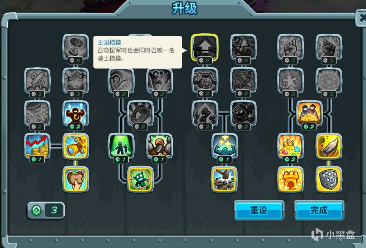 不过可以肯定的是,对于一般玩家而言,初见已有足够挑战,后续更是有英雄挑战(6波精英怪,1命)和钢铁挑战(选定两种塔,1命)等着你(相对来说,感觉反而是钢铁挑战更加容易)——当然打不了三星也不用在意,因为英雄可以升级(但是不上场不补经验),随着英雄等级和技能树提升,后续回去补星也可以。