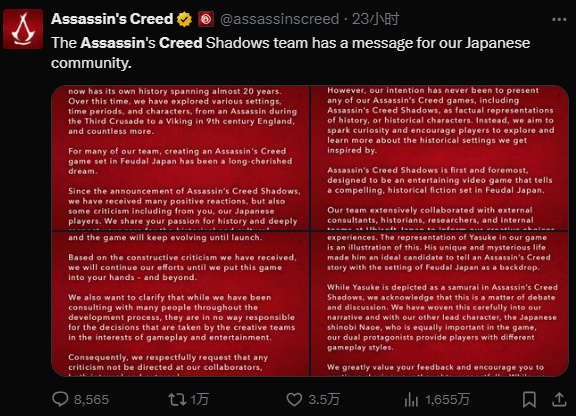 当然,骂归骂,尽管这些事儿引起了很多玩家的不满,但舆论似乎并没有真正影响到游戏,《刺客信条:影》依旧在紧锣密鼓的制作当中。
