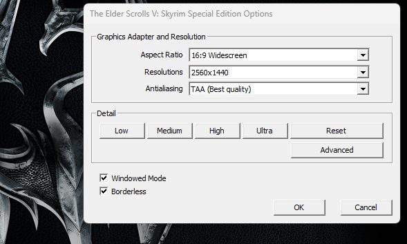 默认应该设置为Ultra quality也就是最高画质。接下来打开Options,进行一些必要的配置。确保勾选左下角的WIndowed mode和Borderless,以确保为无边框全屏。
