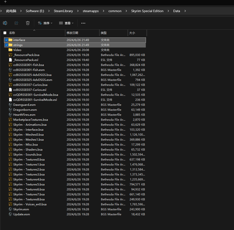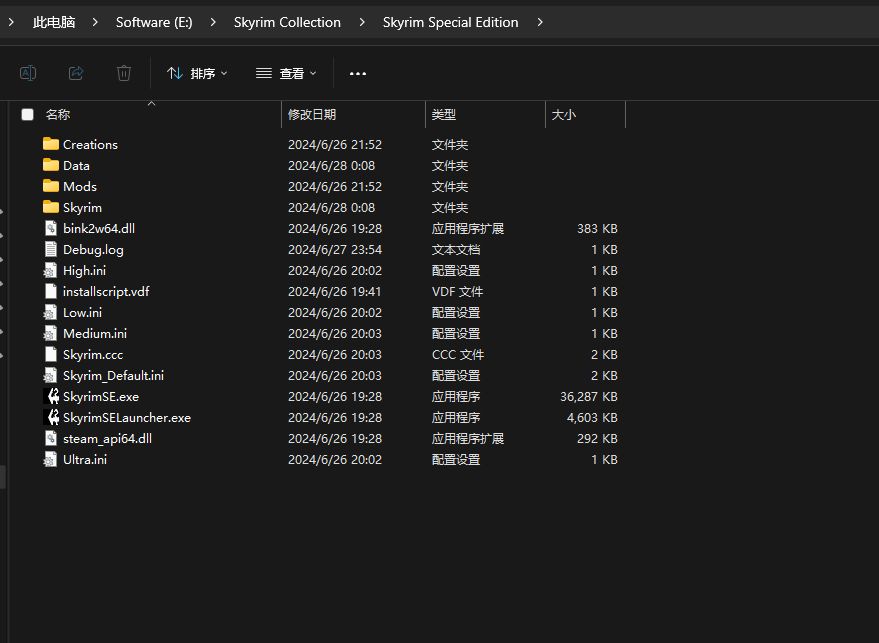 接着,将整个游戏本体连带目录一同放入选好的文件夹内(以我为例,则是放进Skyrim Collection内)