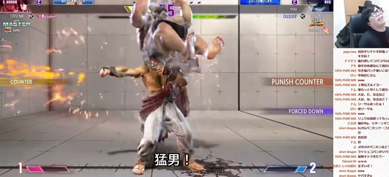 相比於前面兩位,大熊本田直播時則是全程不語。其本田具有三板斧,即大屁股、頭錘、迸放。他的打法很親近普通玩家,但總能發揮奇效。大熊憑藉自己對街霸6的獨特理解,在對局中進行快節奏猜拳的同時,抓住機會騙對手出招打高傷。除此之外還有各種搶招的思路,這使得大熊能時常在短局中獲得勝利,常年穩居天梯1900-2000分段。大熊的節目效果主要來自於對手,因爲其時常在外服打排位,這使得他總能排到一些職業選手和傳奇選手,並打出節目效果十足的對局。觀看大熊本田的對局總會讓我體會到最純粹的格鬥快樂。
