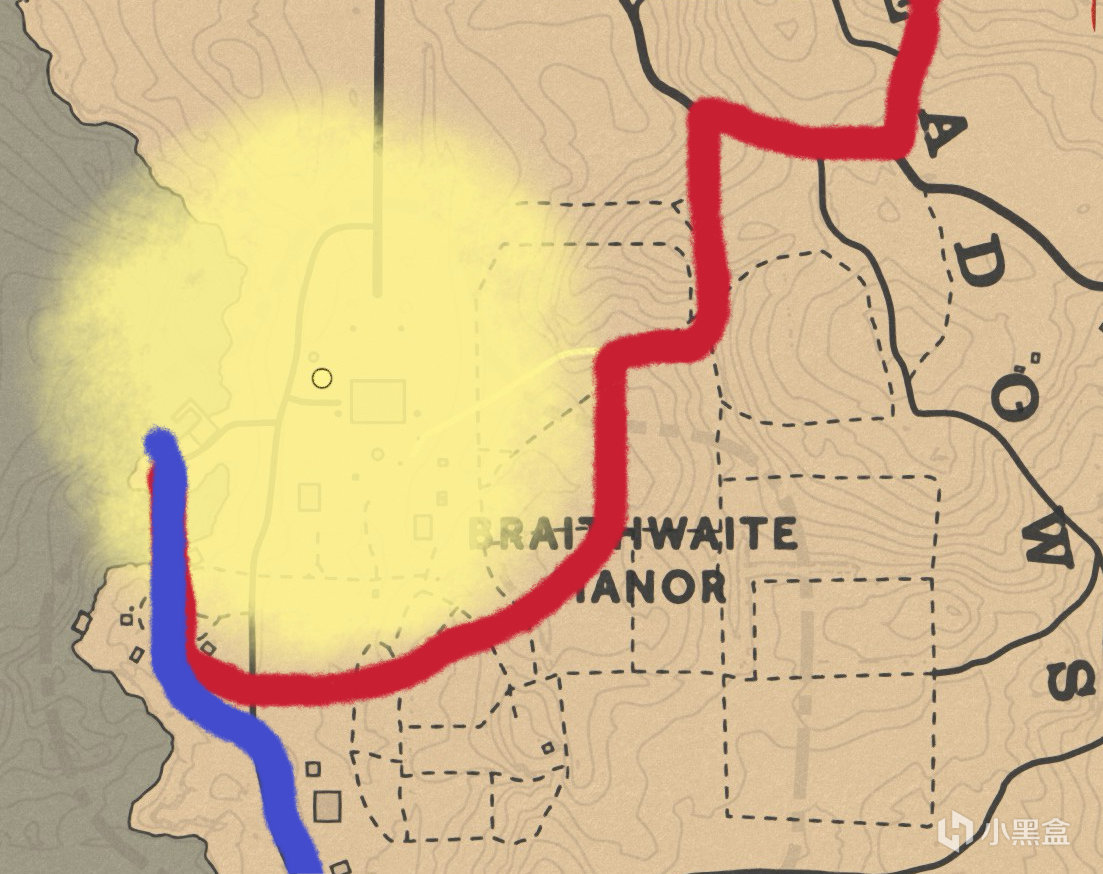注意事項:難度很低,參考下圖路線即可完成。紅色是接近路線,藍色是逃離路線。直接騎馬淌水就可以輕鬆完成。