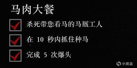 注意事項:主要注意種馬是指馬廄裏我們偷取的馬。逃離過程中儘量緊跟三匹種馬,甩掉敵人後切出套索,有一匹種馬會逃跑。此時立刻追出去,準星變紅立刻丟出套索即可抓住種馬。其他挑戰基本無難度,主要注意靈活利用死眼。