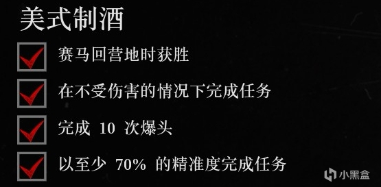 敵人不會立刻發起攻擊,此時注意躲在掩體後確認敵人位置再使用死眼擊殺。難度就大在第二項挑戰上,時刻注意敵人動向,比爾會吸引大多數火力。敵人距離較遠就慢慢依靠掩體往前推進。注意及時補充死神之眼。賽馬過程比較簡單,即使使用比較差的馬匹也可以輕鬆超越達奇,也可以適當超近路,這裏不再贅述。