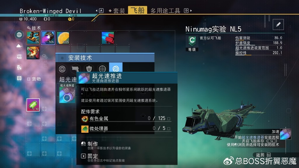3、這個任務也沒啥說的,攢夠材料安裝超光速推進器就行了。