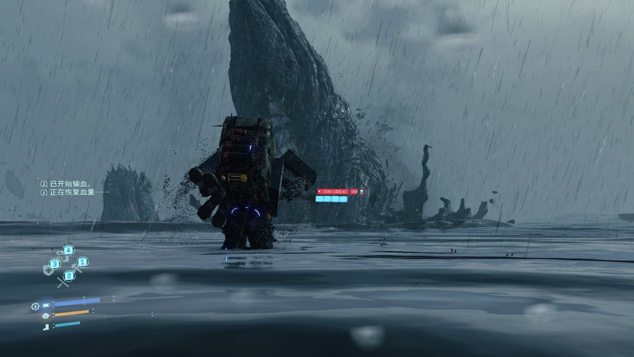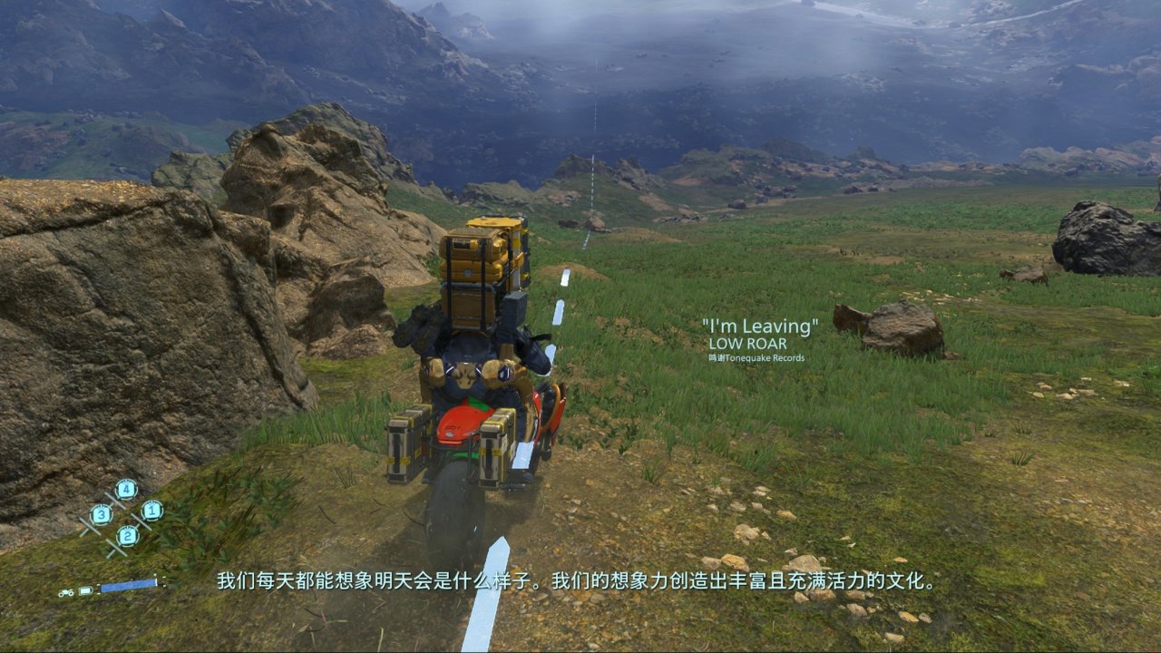 但是我認爲就這樣慢慢走一走也不是問題,不像玩動作類遊戲那樣繃着神經激烈戰鬥,不像RPG遊戲那樣精打細算,但是也不像休閒遊戲那樣玩太久以後喪失了興趣。或許這就是《死亡擱淺》的魅力?