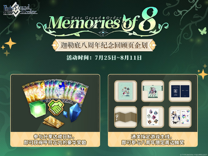 7月25號,日式RPG手遊《命運-冠位指定》(簡稱《FGO》)的國服正式迎來八週歲生日,FGO8週年慶典活動也同步開啓!