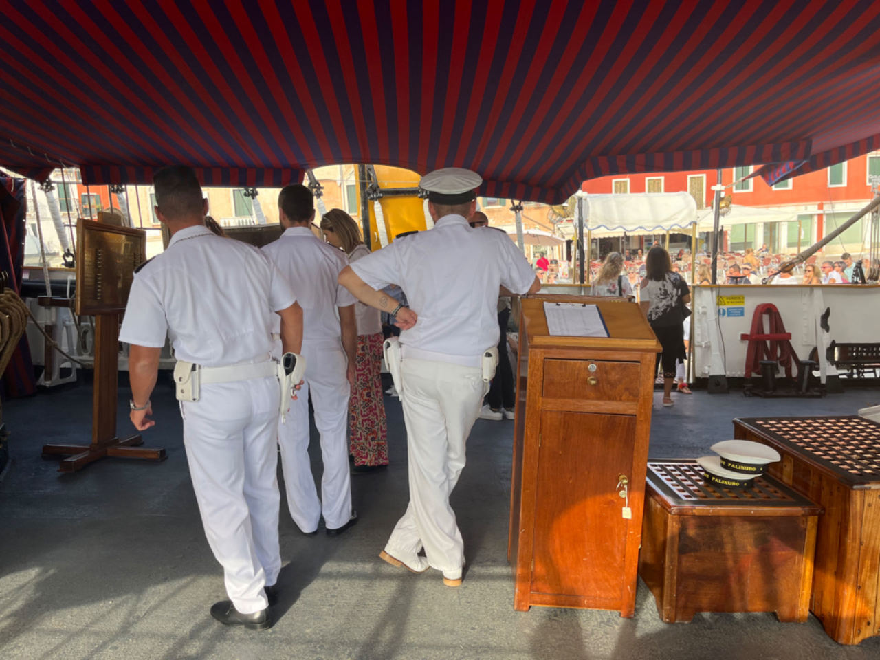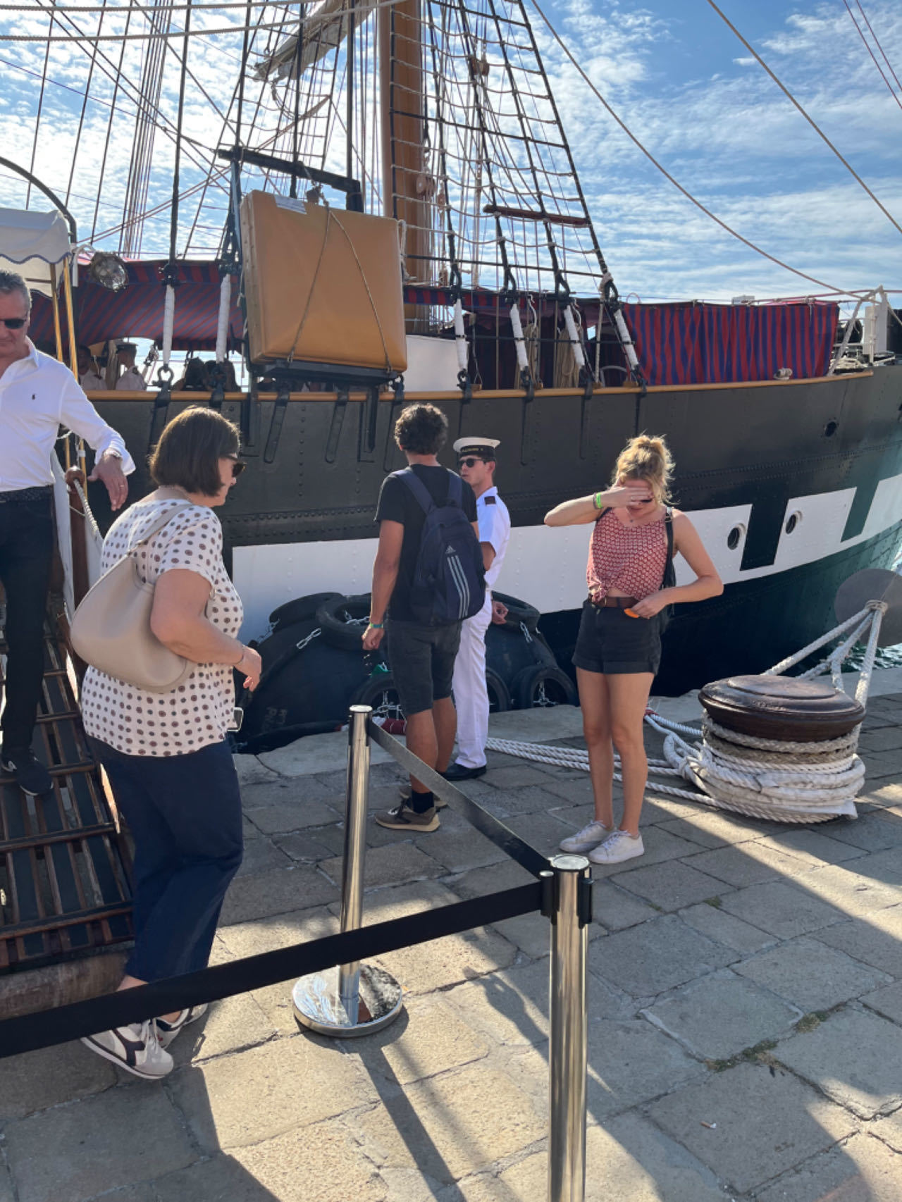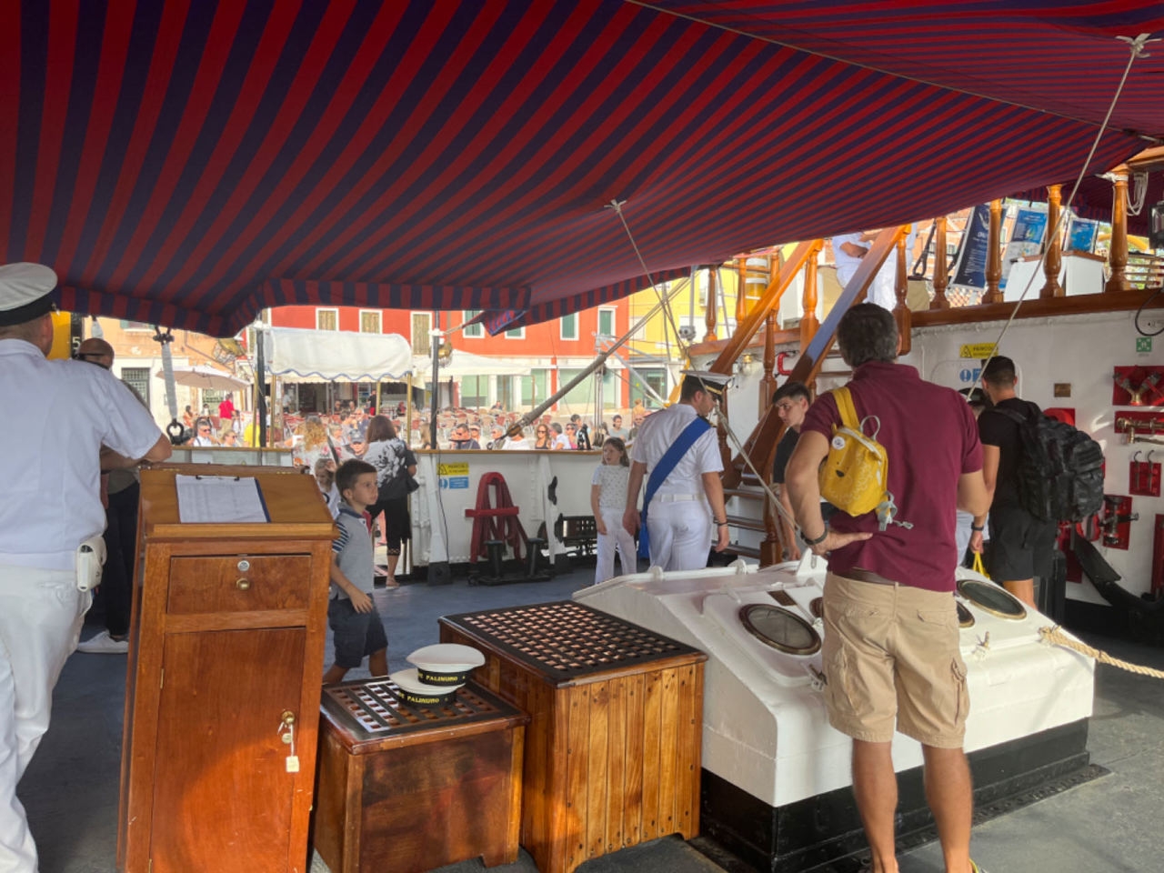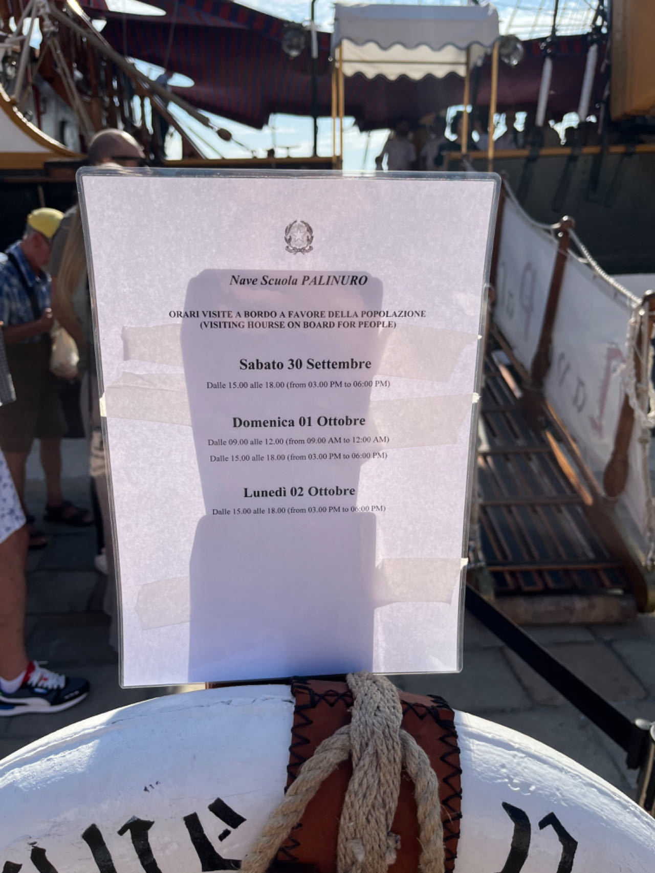 當時是下午三點二十,旁邊的博物館四點四十五趕人,五點關門。我簡單做了權衡,還是決定先登艦,畢竟博物館沒有長輪子和螺旋槳,不會跑掉或者躲到海里,但是Palinuro訓練艦真有帆與槳,真能溜到海上。