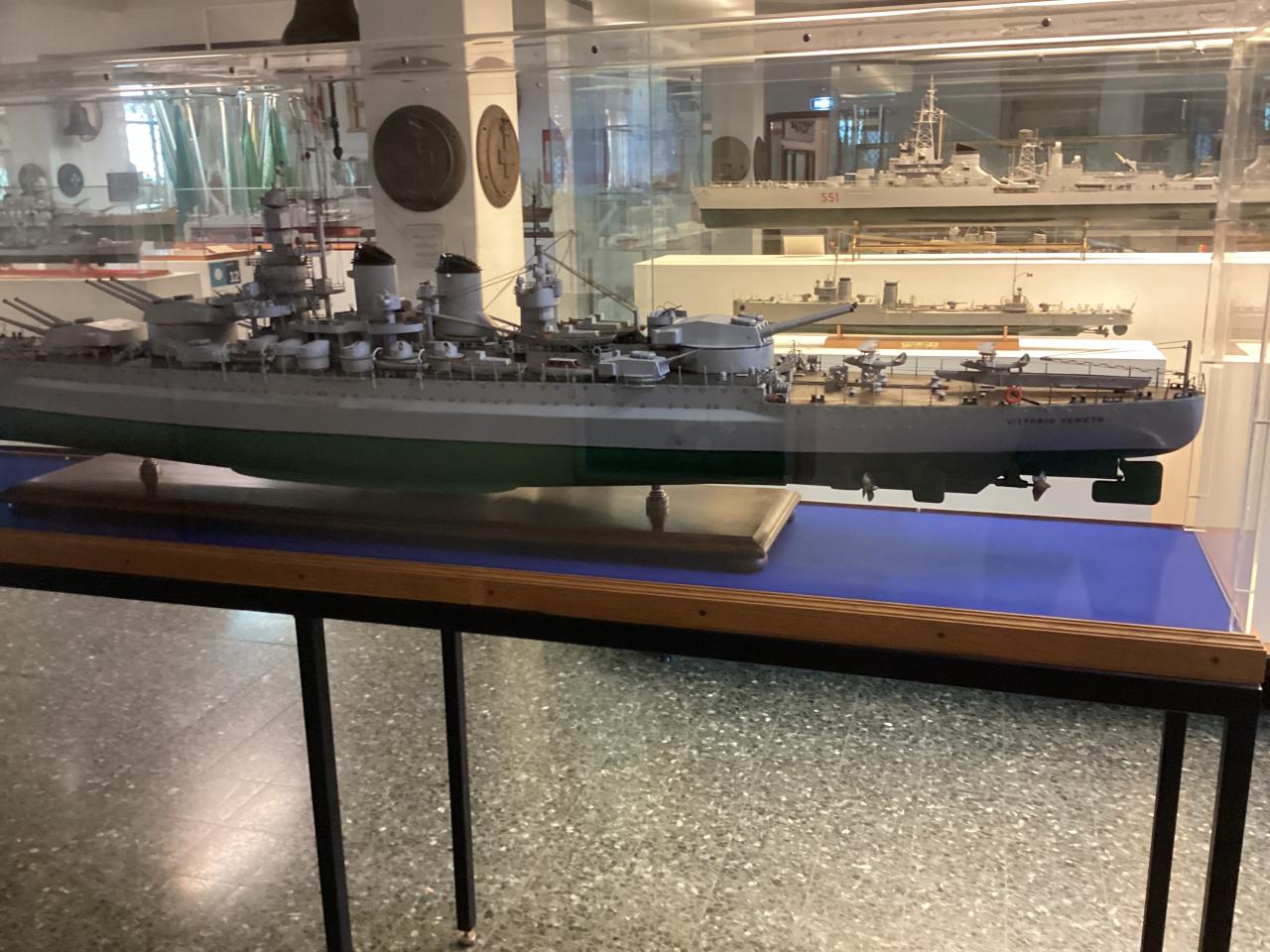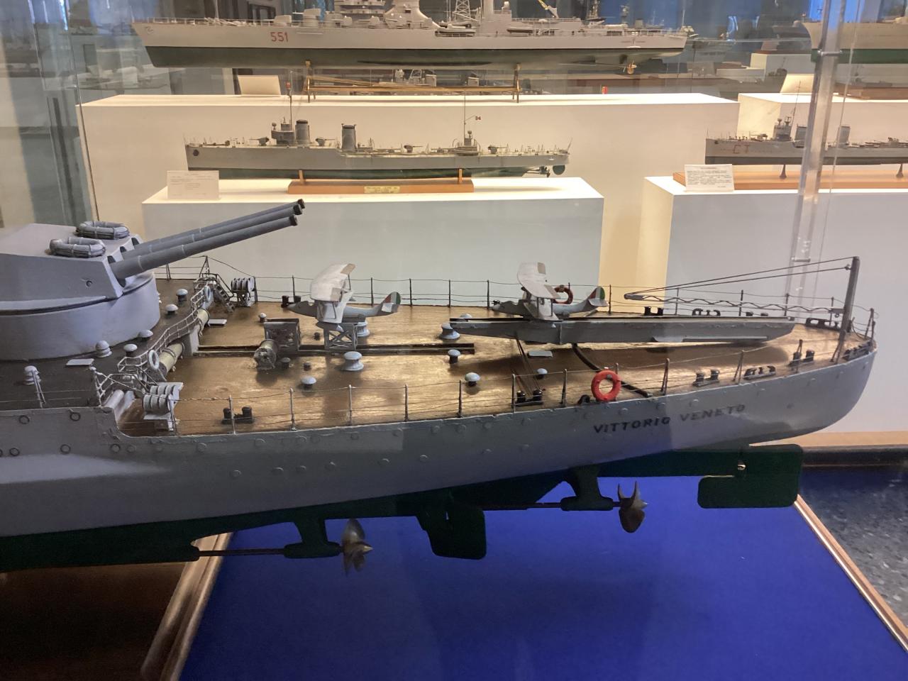艦船模型區有古希臘羅馬槳帆船,有中世紀風帆戰艦,也有現代戰艦。我一眼看到了老婆維內託·維托里奧的名字,便貪婪地欣賞着她的三聯裝主炮、水上飛機、艦橋及裝甲。這個撒丁姑娘,她可真美啊!