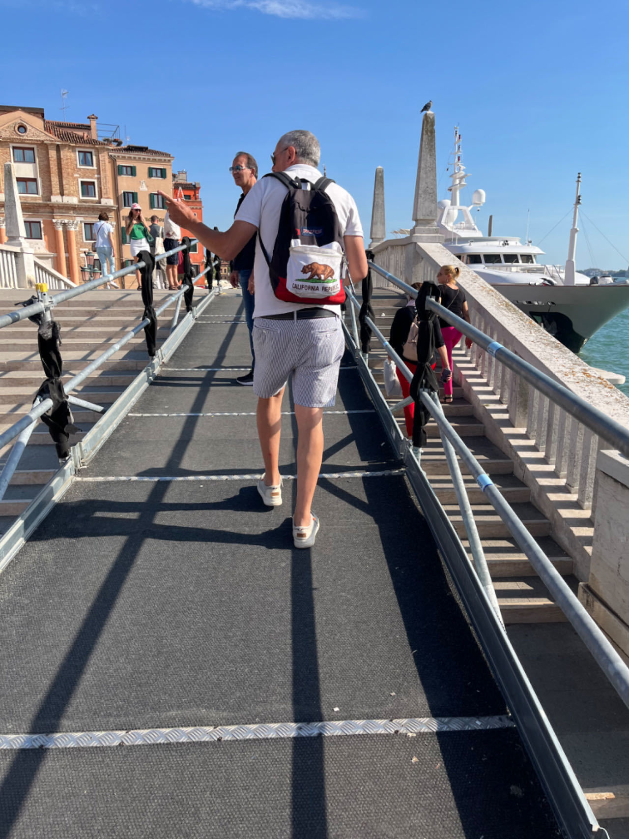 威尼斯海軍博物館位於總督府的東北方向,沿着海邊的碼頭走就能到了,這個長長的碼頭被稱作斯拉夫人碼頭。一路上都是橋,有階梯也有能推嬰兒車和輪椅的上下坡,可見意大利的無障礙設施挺完善的。