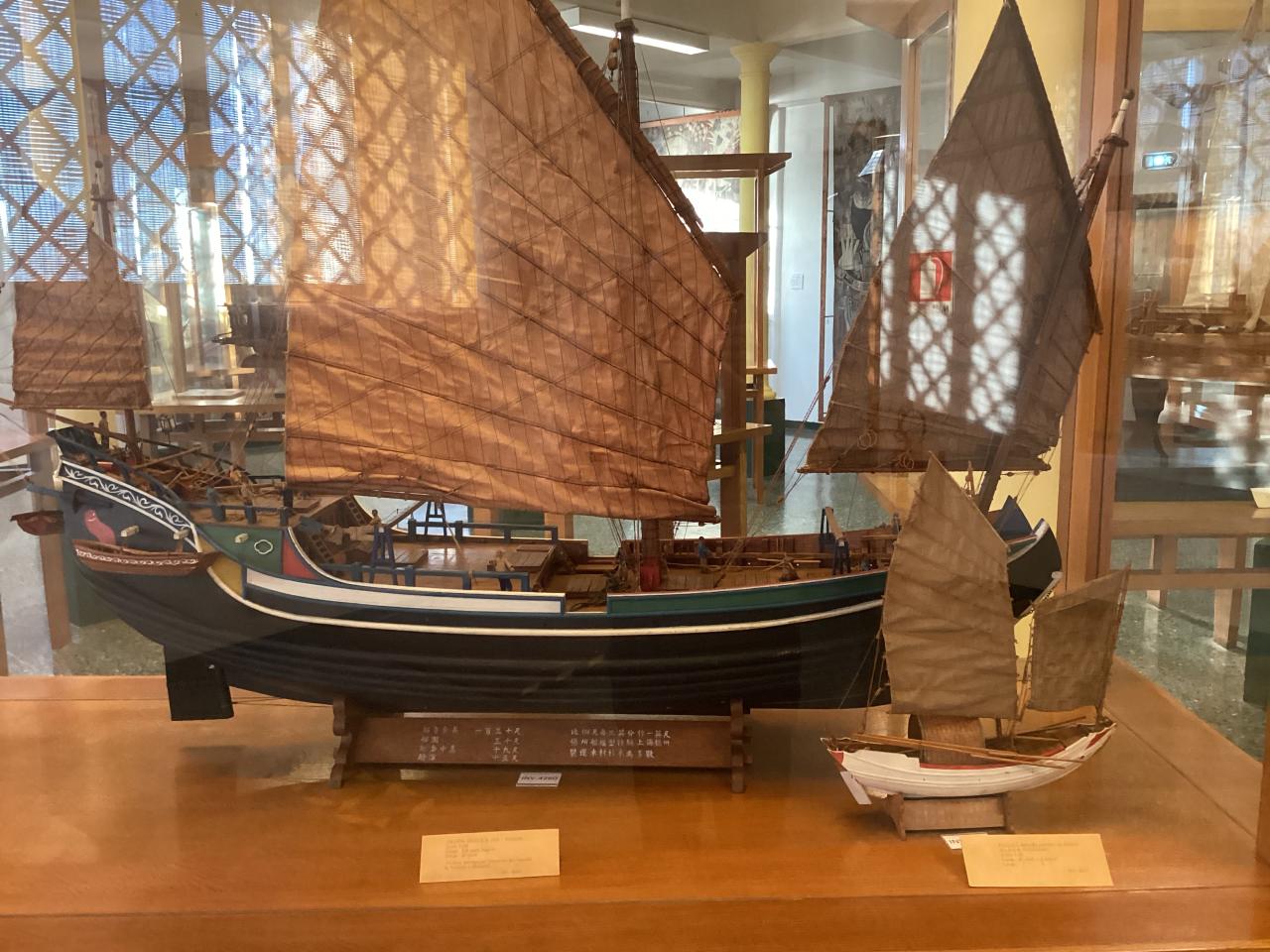 看完維內託、利托里奧及扎拉級的姐妹後,工作人員已經開始趕人了。就像艾吉奧對克里斯蒂娜說只用一分鐘就行一樣,我讓她再給我五分鐘,連忙上樓去看中國古代帆船。不得不說,在異國他鄉遇見自家艦船的展出,有噴薄而出的思鄉之情,也有迸發的自豪感。