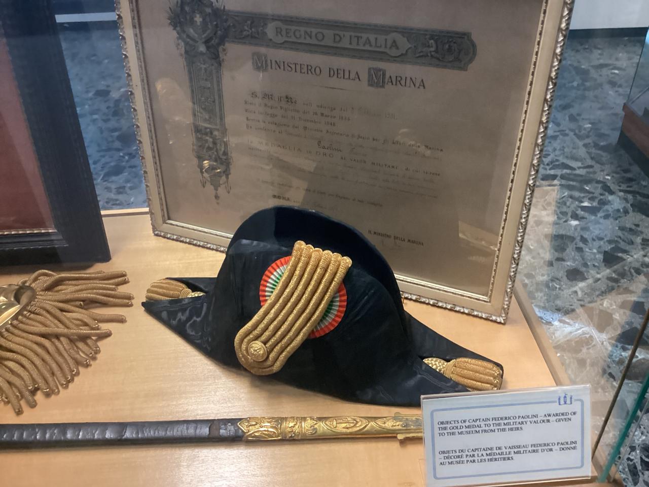 回到博物館。這裏是意大利海軍指揮官的個人物品以及各國制服,光是帽子就包含了意大利、英國、美國、日本、德國、俄羅斯、韓國的,也有北洋海軍和PLAN的。