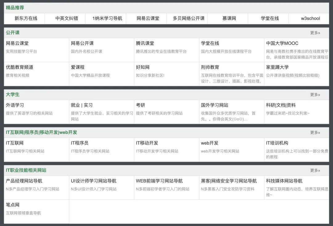 严格说,它是一个学习网站导航,如果你觉得上面的网站不够丰富,那么在这个网站上,你可以找到各种各样可供白嫖的学习网站,总有一款适合你!