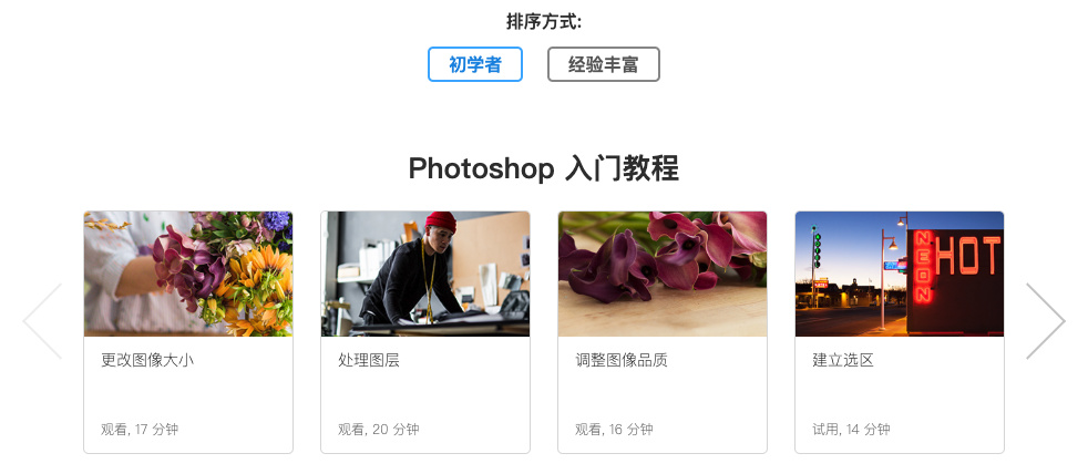 在这里,你可以选择查看 Adobe 旗下各类软件教程