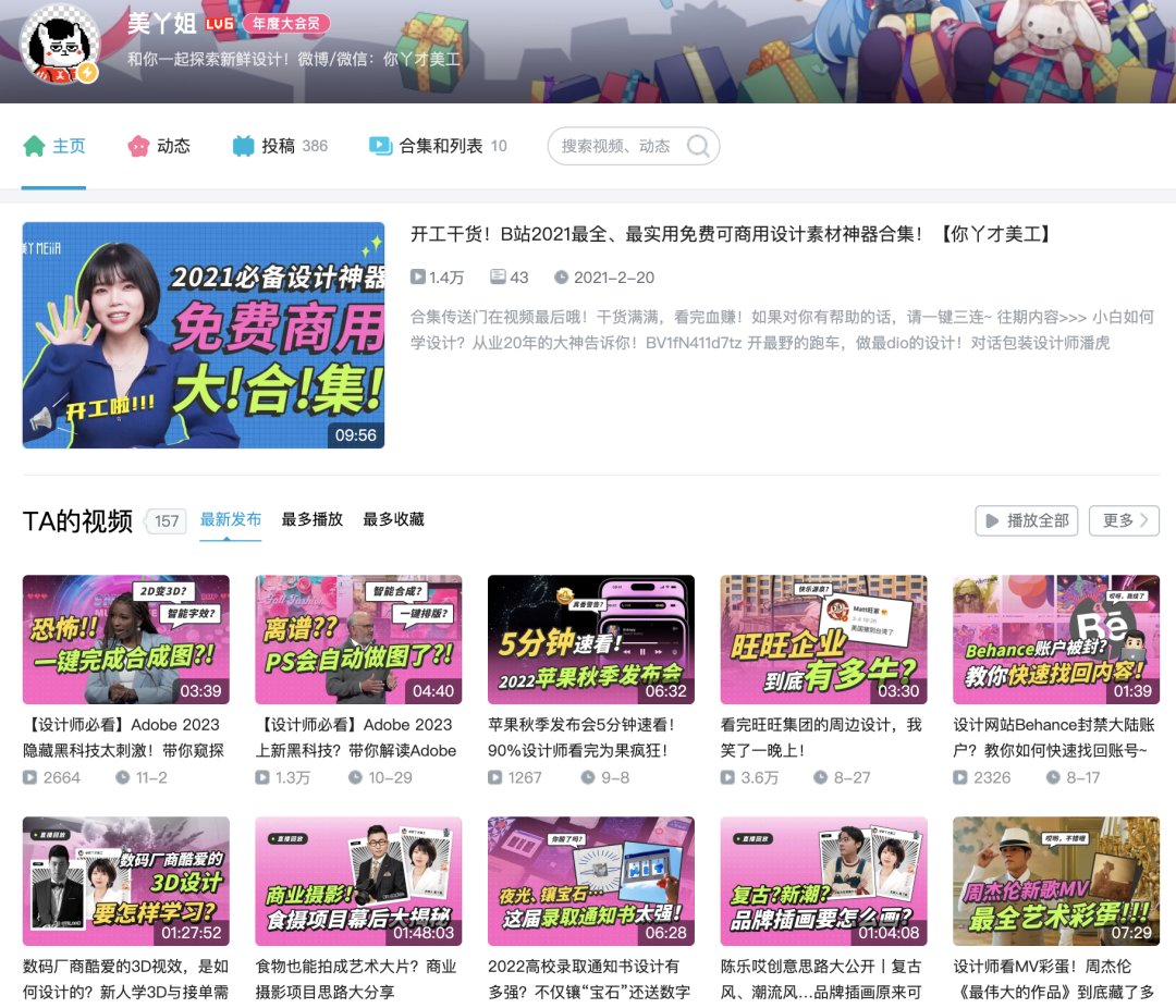 说到学习网站,怎么能不提到 bilibili 呢,B 站中有不少设计相关的宝藏博主,无论是设计理论还是前沿信息,都能从他们那获取,