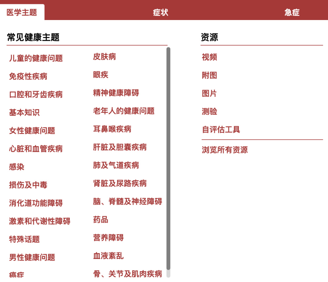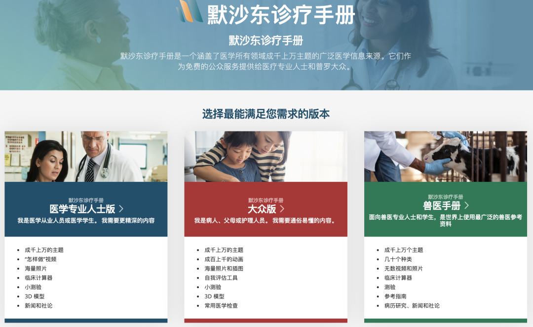 医学知识学习网站,在这里你可以查到各种生活中能用到的健康知识,分为三个版块:专业人士版、大众版、兽医版。