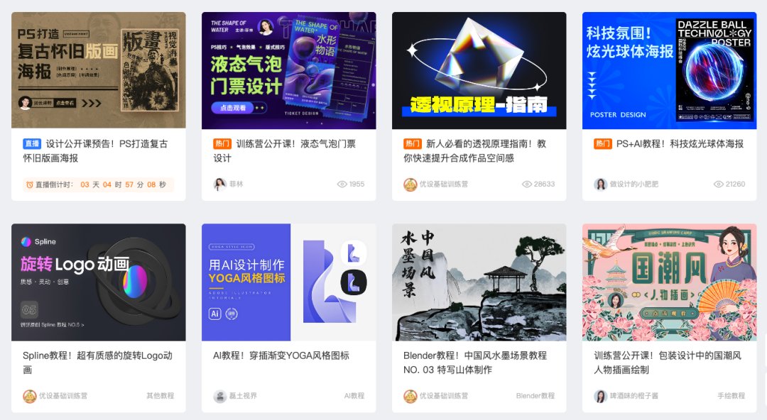 除了这些系统的自学教程之外,网站每天都会更新时下流行的设计相关教程,囊括了平面设计、手绘、动效、3D 设计等各个类别,简直是设计师必备自学网站。