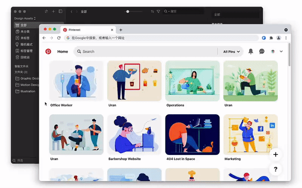 搭配 Eagle 网页插件,你可以一键采集图片。