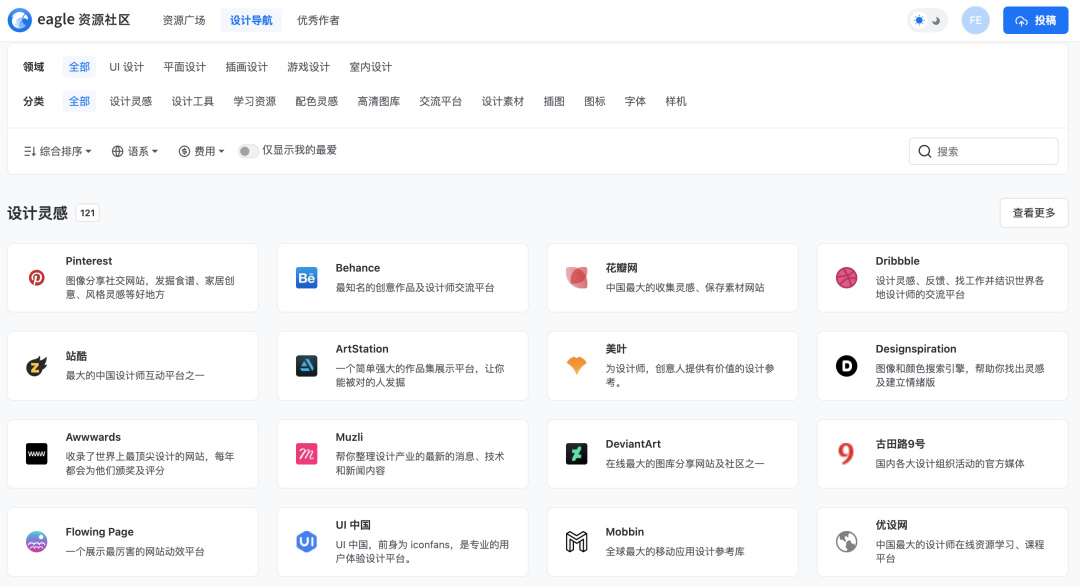 推荐过很多次的 Eagle 资源社区,在这里你不仅能找到各式各样的设计素材以及设计参考。