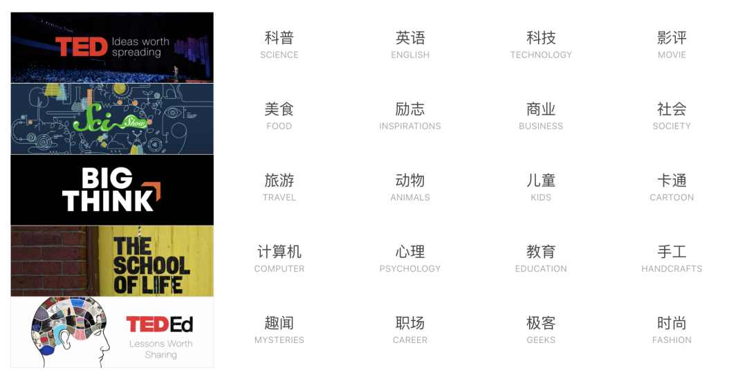 这个网站翻译了国外各类别的课程和讲座,种类十分丰富。