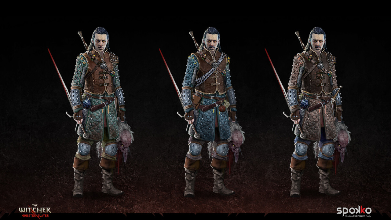 由皮革製成的分層夾克和金屬鉚釘/鉚釘加固,對於那些既強調靈活性又重視保護功能的人來說,這件皮甲是最佳的選擇,顯然獵魔人不會使用普通的皮革來製作自己的護甲,而怪物盛行的十世紀,獵魔人有更加易得的斯考芬獸(石化雞蛇)皮來製作保護自己的盔甲,同時還不影響自己釋放法印。