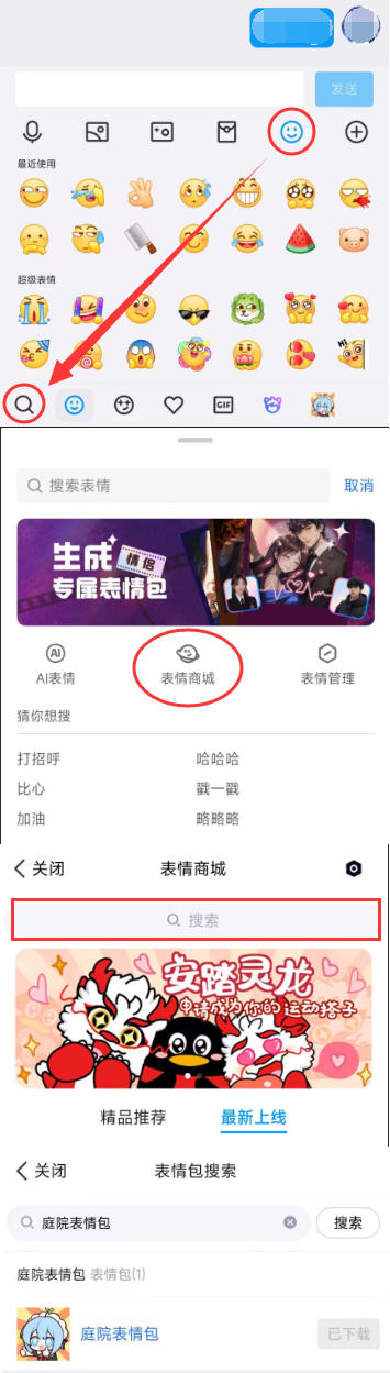 最後說一下,庭院的表情包在QQ平臺免費上架啦!!!按照下圖就可以添加到庫中免費使用,因爲數量限制這只是第一彈,後續還會出新的!!!