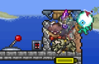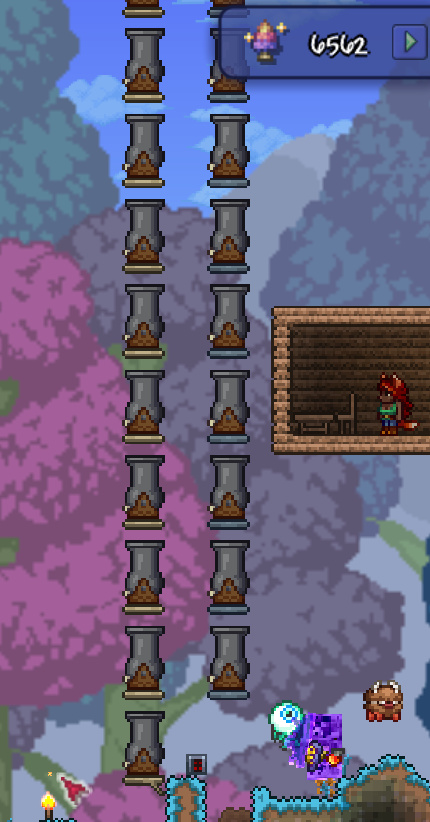 此方法僅僅適用於擁有泰拉之刃,天頂劍等大範圍攻擊的近戰武器的玩家,可以打月總和光女,建議合成泰拉之刃後做此裝置,遠程武器一概用不了。