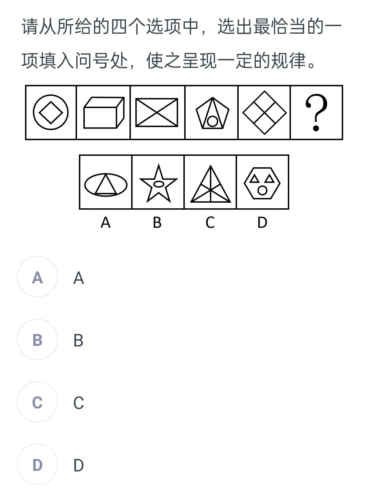 而圖推本質上就是記下來常見的規律然後一個個試錯說實話我也覺得很蠢,這部分不必強求,記一下常見的規律就行,比如對稱(是否中心或軸對稱,又或者數對稱軸數量),交點,直曲線,筆畫數(一筆畫需要數奇點,大家可以查一下這個小知識),圖形劃分成了幾塊,如果是連續變化的圖形又可能有顏色計算,旋轉變化,時鐘等等等等。這些大家遇到就知道了講也講不太清,推薦刷題然後被折磨你就慢慢會一點了,不會也不能強求