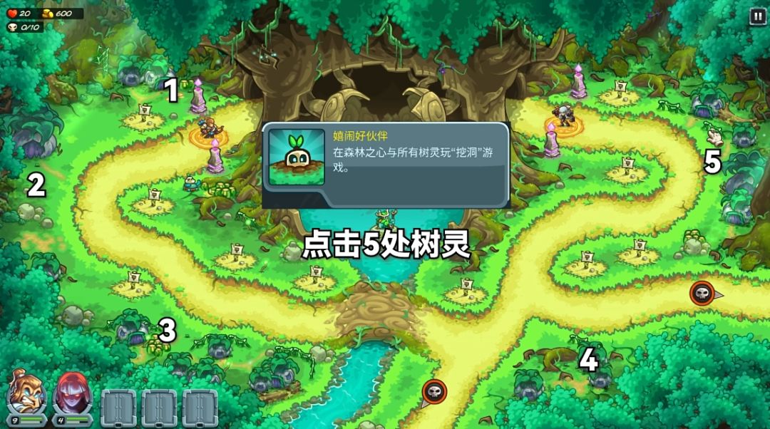 如圖點擊5處樹靈即可。