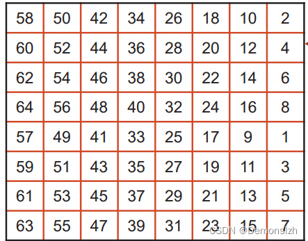 我们来简单看一下DES(非常简单的对称加密算法)的流程,首先进行IP置换(初始置换),其实就是小朋友对号入座,顺序参考下图,一号座坐58号小朋友,二号座坐50号,以此类推,打散小朋友的顺序。