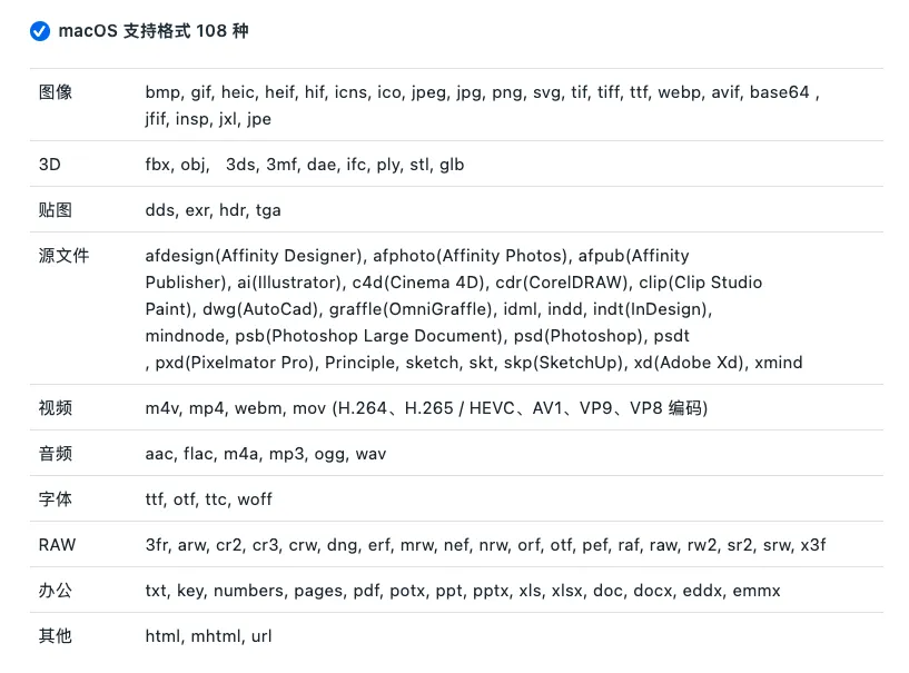 Eagle 所支持的預覽文件衆多,MacOS 支持 108 種,Windows 支持 99 種。