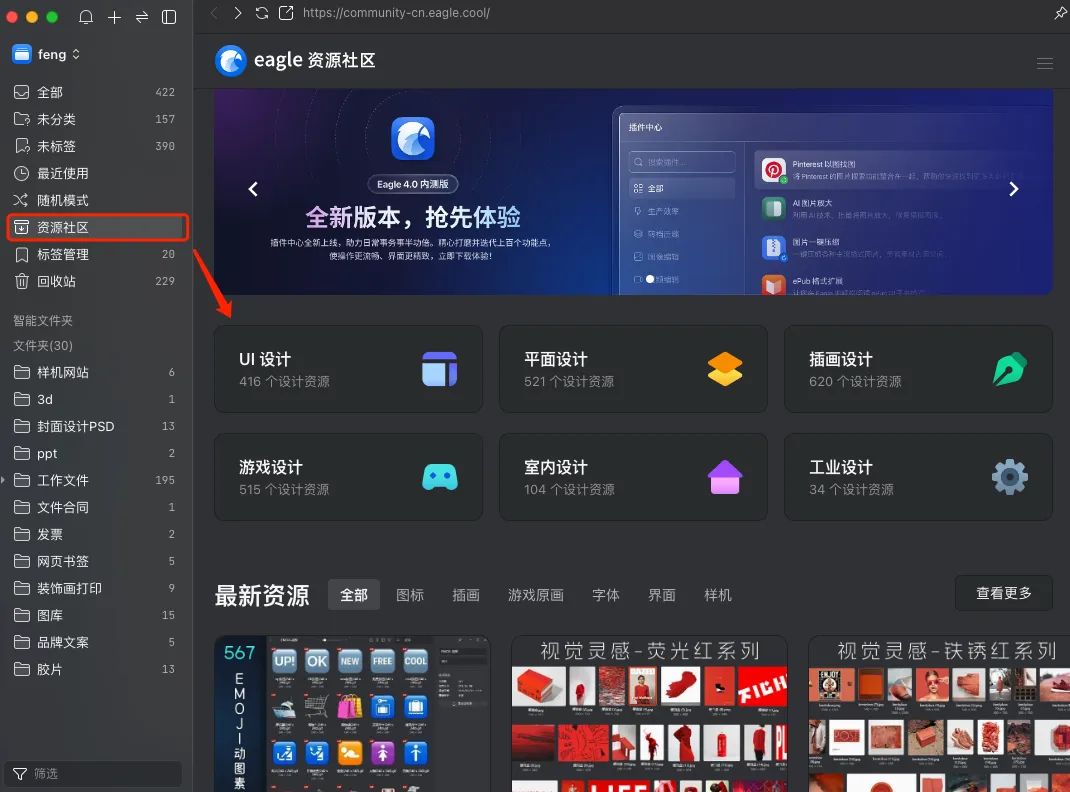 何必再大海撈針苦哈哈全網搜尋設計素材,Eagle 軟件內就有資源社區,海量設計素材一站式下載。