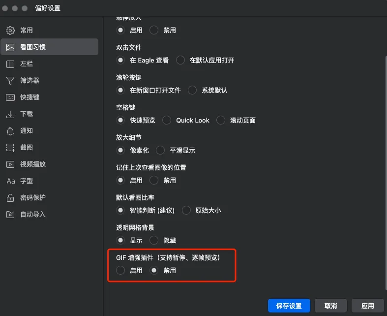 但如果你點擊偏好設置-看圖習慣,往下滑勾選最後一個【GIF 增強插件】選項後。