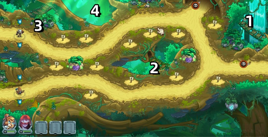 本關一共四個樹靈分佈在圖上,等他們出現時點擊他們即可。