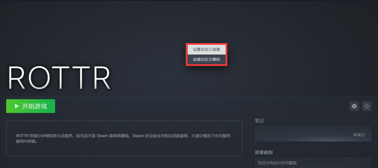 庫>>選定遊戲>>遊戲界面背景圖右擊,設定自定義背景、自定義徽標